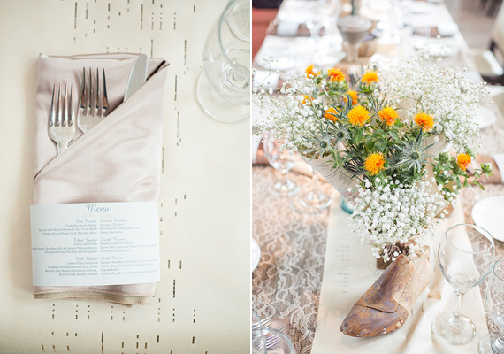 Here’s another yummy detail for ya… Instead of the traditional “chicken, beef or vegetarian” option, Ashley + Daniel treated their guests to a seven-course tasting menu.