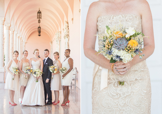 Photographer: 1313 Photography / Event Design & Planners: The Great Party Box / Event Coordinators: Matthew Tuttle & Nita Stutzman / Venue: The Ringling Museum of Art / Hair & Makeup: Laura from Nuovo Salon / Florist: Beneva Flowers / Cake: Morton’s Gourmet Market / Catering: Treviso Restaurant / Invitation Designer: The bride / Letterpress Printing: The Laughing Owl Press / Bride’s Dress & Veil: Maggie Sottero from Sarasota Brides and Formalwear/ Groom’s Suit: Burberry / Shoes: Salvatore Ferragamo / Wedding Band: Bvlgari / Groomsmen’s Suits: Calvin Klein