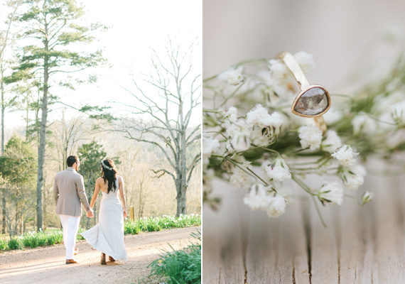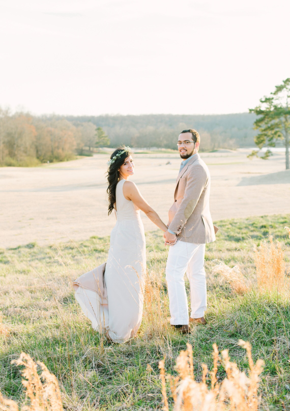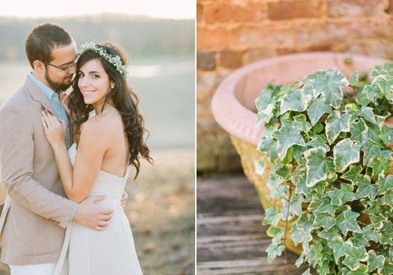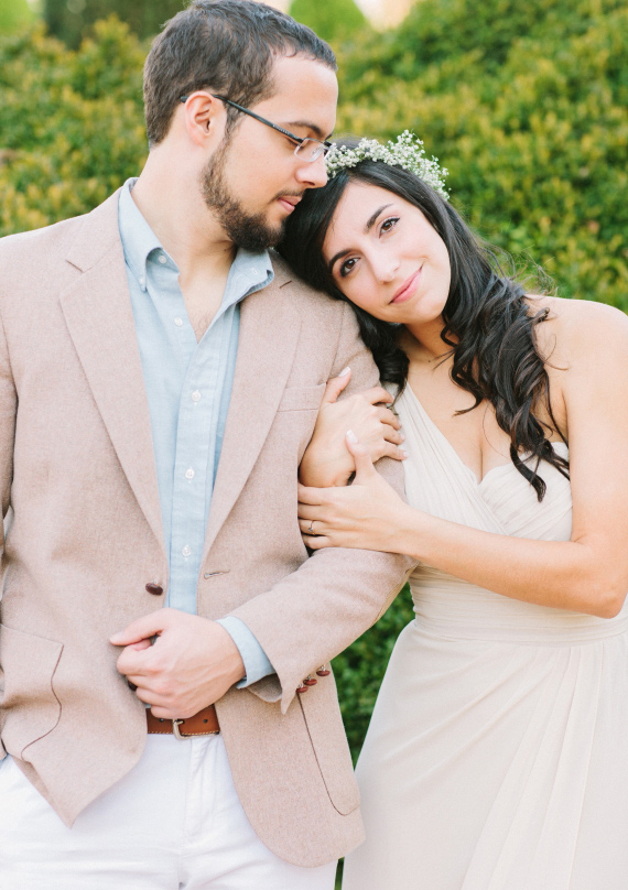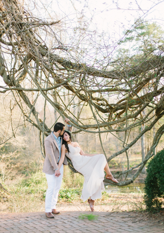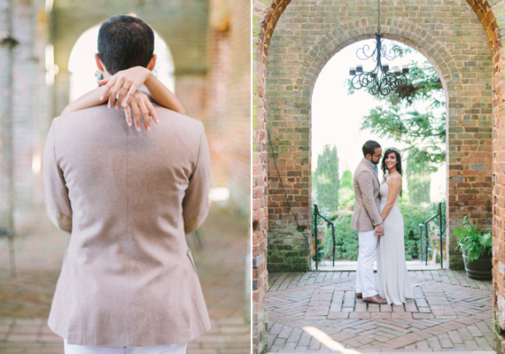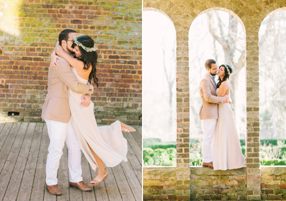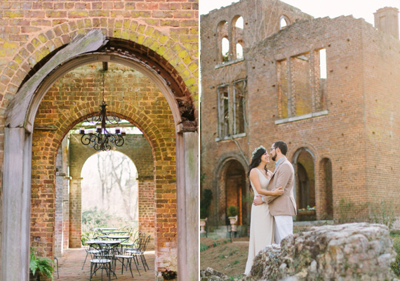 The dreamy e-sesh from Libelle Photography took place in the beautiful ruins of Georgia’s Barnsley Gardens, the same spot where Rafael proposed to Cristina a couple months before. But as if that wasn’t romantic enough, legend has it that the lady of the manor, Julia Barnsley, was the inspiration for Scarlett O’Hara in Gone With the Wind. Pure Southern romance with lots of history. The scenic gardens and the golden light give this whole session a romantic and timeless feel.