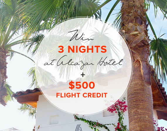 How would you like to win a three-night stay in a Poolside King Deluxe Room with Jacuzzi at Alcazar Palm Springs? AS WELL AS a $500 flight voucher to help get you there?