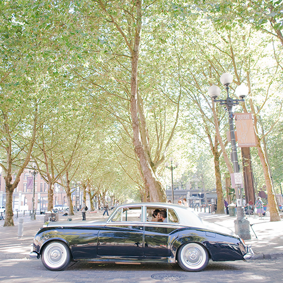With the help of their loved ones, Amanda + Michael spent practically every day of their two-year engagement designing and collecting and crafting away. From the elegant invitation suite to the fabric and lace flowers to Amanda’s absolutely stunning gown, almost every gorgeous little detail in this Seattle soiree was a DIY. Check out the rest of Yvonne Wong’s soft and lovely photos below, and read on to hear just how Indiana Jones (yep, Indiana Jones!) inspired their big day. Click here to view the full gallery of images!