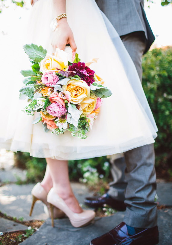This summery shoot from Plum Jam Photography and Danae Grace Events will cheer you right up and then some. It’s chock full of colorful inspiration for couples looking for a playful yet relaxed wedding vibe. The Spanish tile around the property inspired the vibrant color story, and the neon hued popsicles, Bellini bar, and adorable wardrobe choices just add to all the fun.