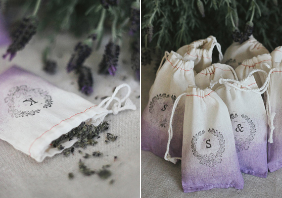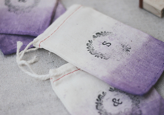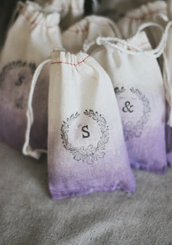 We can always count on Miss Kelli Murray to bring us the most fab crafty creations imaginable. (In case you missed ‘em, her watercolor paper flowers, clay feathers, and terrarium escort card DIYs are all majorly worth checking out.) Today is no exception with these adorable dip-dyed and hand-stamped satchels of lavender. The dried lavender buds make a sweet alternative to a traditional post-ceremony rice toss, or a scented sachet for guest to take home and stow away in their dresser. Here’s Kelli to show us how it’s done…