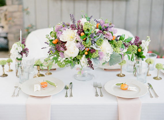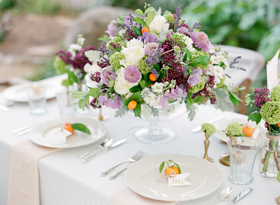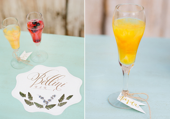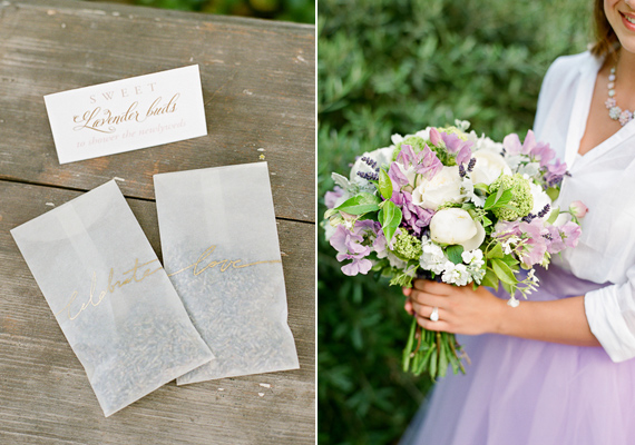 Between Miss Kelli Murray’s sweet dried lavender favor bags and this summery inspiration shoot, we’re on a bit of a lavender kick today. For this shoot, A Charming Occasion and Lavender & Twine Photography had the idea to throw some citrus into the mix too. From the wardrobe to the Bellini bar to the abundant florals, pops of these two hues add some cheery brightness to each element.