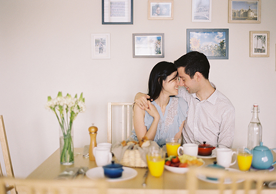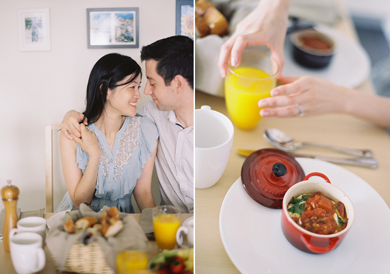 The anniversary shoot was simple but consisted of many elements that meant a lot to us. It had our favorite local bakery which reminded us of time spent together in France when David was studying after we got engaged, our first home together as a married couple, and the fun we have preparing a brunch to enjoy with friends on a lazy Sunday morning.