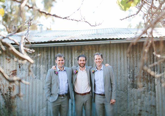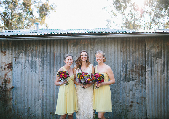 Photographer: James Frost / Hair: Jessica Brooking / Bouquets & Boutonnières: Brasford House and Cottage (bride’s stepmother) / Centerpiece Flowers: Groom’s aunt and godmother / Cake: Bride’s sisters-in-law / Catering: Family members / Invitation Designer: Emma Paul (bride) / Rentals: Aussie Country Catering / Bride’s Dress: Allure Bridals / Shoes: Wittner / Groom’s Suit: Country Road / Bridesmaid Dresses: PacoPM / Groomsmen’s Suits: Country Road