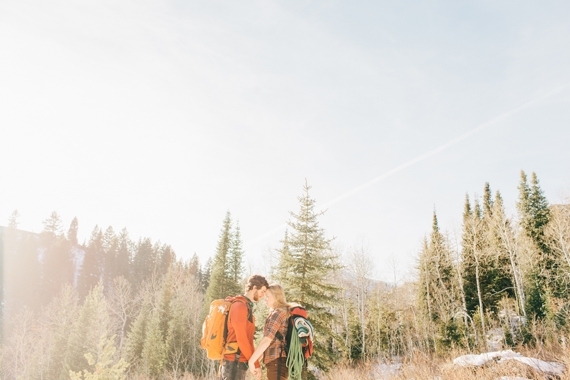 Ren + Julianne are adventurous types who both love the outdoors. These two cuties met in high school and have been married a few years, so to celebrate their anniversary they had photog Ciara Richardson snap some photos of them in their element in Big Cottonwood Canyon in Utah. From the powdery snowfall to the tree-lined horizon to the crisp beams of sunlight shining through the chilly air, it doesn’t get more picturesque than this.