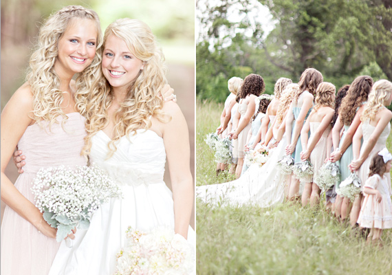 Super cute detail about the flower girls. One of the dresses was made for Luci in 1994, and the pink dress the little one is wearing was made for her mom when she was in a Little Miss beauty pageant at 4 years old in 1968.