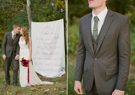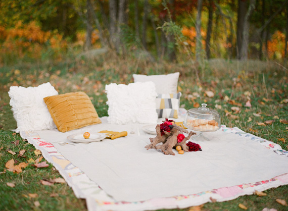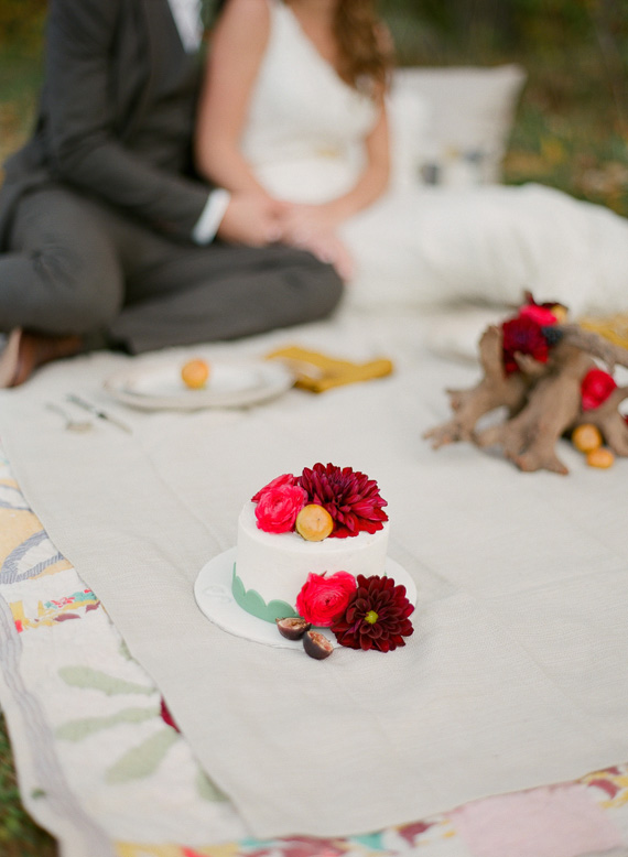 A lot of pretty can come from being inspired by a fig. Like this romantic fall wedding shoot from Ruth Eileen Photography and Wild Folk Studio. Deep reds, maroons, mustards, fun pillows, the fall landscape, a beautiful couple in love… what more could you need?