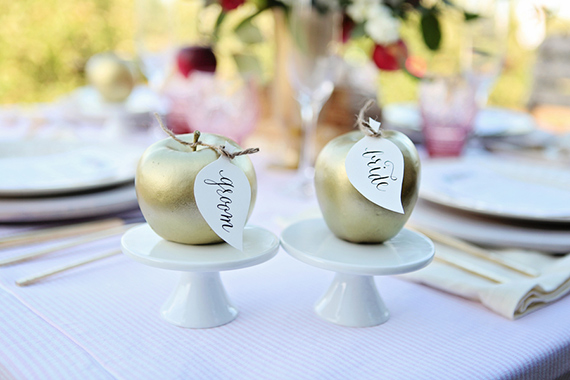 We’ve seen honey, jam, and homemade olive oil favors, but how cute are these homemade applesauce jar favors? Such a sweet way to tie the whole days events back into the apple orchard.