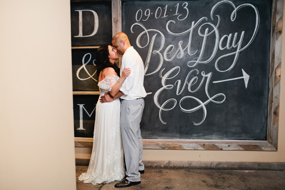 This surprise wedding from Megan Welker, just made our week. The idea of surprising your closest friends & family is so fun & heartwarming. After you see the looks on the guest’s faces, you’ll know what we’re talking about. We can only imagine how nervously excited Deena + Michael were. There were definitely some guests that suspected something might be up, especially after getting those gorgeous Sugar Paper letterpress invitations to what everyone thought was an engagement party. When guests arrived a chalkboard read, “Surprise! Welcome to Our Wedding!”. After you hear how Deena was inspired to throw a surprise wedding, you may even consider throwing one too!