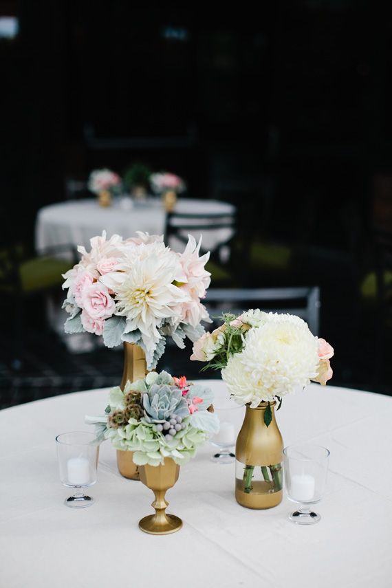 Money saving tip: Our amazing coordinator/florist, Katie of Kreate Catering had a brilliant idea for table linens – she bought drop cloths from the hardware store! She also loaded up on tons of mason jars and spray painted cheap glass vases for the flowers. I think we also saved by choosing a venue that was already naturally beautiful and didn’t need a ton of décor. The outside patio was already full of succulents, herbs, flowers, etc.