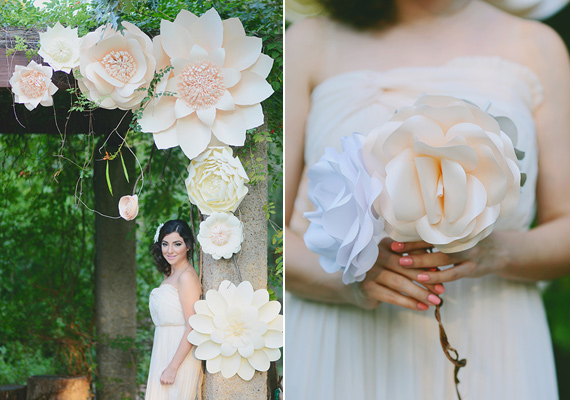 Fact: brides love paper flowers. We love paper flowers. We LOVE Khrystyna Balushka’s paper flowers. They’re gorgeously large, make you want to walk up and see them up close, and they never die. What a pretty world to live in, right?