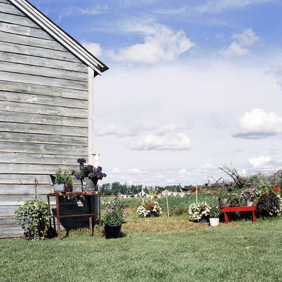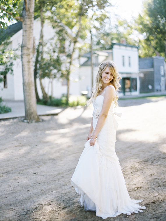Photographer: Klem & Co Photography / Ceremony: Groom’s parent’s farm / Reception: Egge’s Barn in Fort Edmonton Park / Invitation Designer: Bride / Makeup: Amber Clark from Siren makeup and artistry / Hair: Maid of Honor, Danielle Wiebe / Florist: Mother of Bride / Cake: Two friends, Andrea Humphrey and Kelly Thompson / Catering: A Capella Catering / Rentals: ABC rentals / Wedding dress: made by mother of the bride / Shoes: ModCloth / Veil: made from mother of bride’s original veil / Groom’s suit: Zara / Shoes: Aldo / Bridesmaids: Convertible Wrap Dress