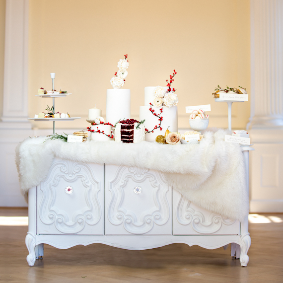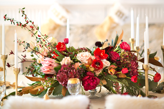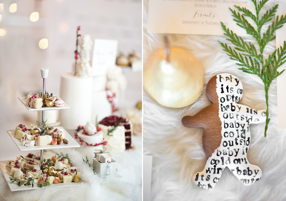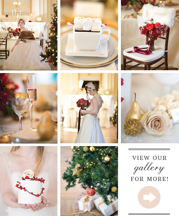 The summer-like temps we’ve been experiencing here in LA aren’t going to stop us from getting into the Christmas spirit. It’s next week, guys! Can you believe it? Thank goodness for inspiration like this lavish, winter wedding shoot from Maru Photography and Red Carpet Ready by Christina. It’s got the finest trimmings needed for a family gathering or winter wedding celebration. So, get the gourmet marshmallows ready for hot cocoa, the gingerbread men ready for dunking, and the gold candlesticks out for a candlelit dinner. Some faux fur to cover your chairs too, if you’re feeling fancy.