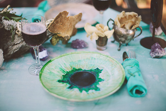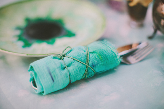 Everything on the table was handmade or found at a local flea market, so you don’t need a big budget to get this look. The plates were handpainted, and the napkins & tablecloth were tie-dyed. *Check out our DIY hand-dyed napkins tutorial to see how to make them for your own event! P.S. It’s addicting!