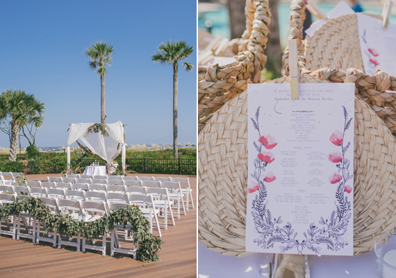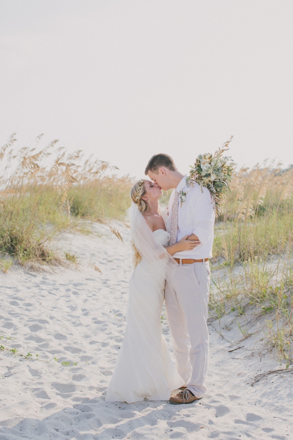 Photographer: Jessica Barley of A Darling Day / Ceremony & Reception Venue: The Westin Resort, Hilton Head Island, SC / Event Coordinator + Designer: Julia Dodson / Invitation Designer: Bride, Brittany Von Lanken {contact: bsalm9 (at) gmail (dot) com} / Hair & Makeup: Bride’s sister Heather Boyce / Florist: Gardenias, Hilton Head Island, SC. / Cake: Sweet Carolina Cupcakes, Hilton Head Island, SC. / Catering: The Westin Resort, Hilton Head Island, SC / Rentals: The Westin Resort, Hilton Head Island, SC and Big Time Events / Wedding dress + shoes: BHLDN / Veil: made by mother of the bride / Floral crown: Etsy, by Roses and Lemons / Accessories: vintage gold bracelet, blue amethyst ring from Bergners, blue topaz and pearl earrings from Overstock / Groom’s suit: Banana Republic, tie from JC Penney / Shoes: Sperry Top Sider / Bridesmaid dresses: designed by bride, hand sewn and put together by mother of the bride / Ring bearers: Polo and pants from Bergners, shoes are Sperry Top Sider / Flower girls: Dress from Elite Bridal