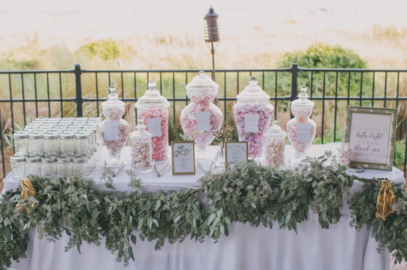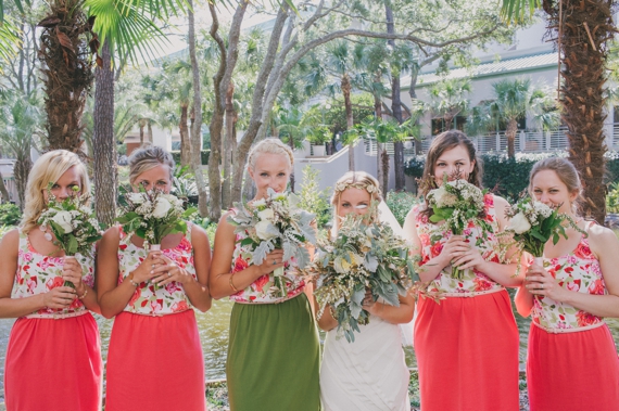 The way Brittany described her wedding to us makes us wish we could have been a part of the whole process. A wedding with 90% of it being DIY, including those adorable floral bridesmaid dresses, made by Brittany’s mom, was sure to have a handful of fun craft nights, right? Plus, the benefit of having that much control over all the details meant she could mis-match colors, portray her artistic side (love the invitations she designed!), and have the perfect beachside, whimsical English garden inspired wedding she wanted.