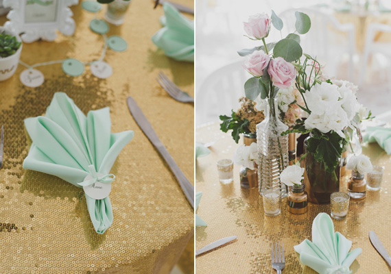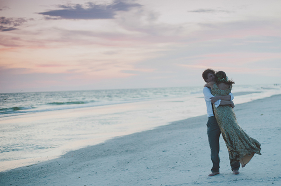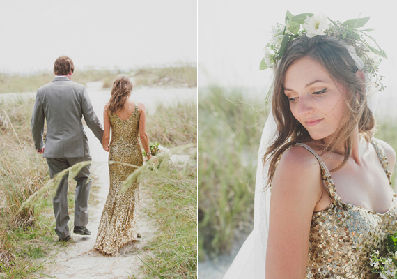 These two hit all the right marks. They wanted a vacation and a wedding, so they decided on a destination wedding. They’re parents after all, and rightfully so deserve a vaca. They wanted a laid back beach wedding with a touch of traditional elements, so they invited a few close friends and family to celebrate at their annual summer getaway spot, Anna Maria Island, in Florida. Lastly, in early 2013, Dixie Pixel Photography held a contest for free wedding photography, and Anne & Drew won! In addition, they also won $1500 towards floral and decor from Whimsical Gatherings. Oh, and don’t think her gold sequin wedding dress (and table linens!) are going unnoticed…