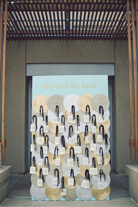 We met on a Sunday, at the same cabana. I had over heard Danny talking about making fake backstage passes to get in the front row at concerts. As a huge music lover, I thought that was super cool and asked if he wanted to be my friend. So instead of traditional place cards we made fake backstage passes to tie in how we met.
