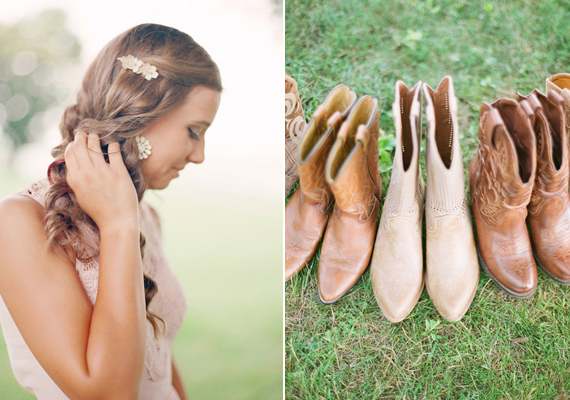 There’s a little part of us that wishes we could pull off the whole cowboy boots wedding look. But alas, we’ll leave that to Brittany and her adorable blush bridal party. This was a bit of a destination wedding for B + L. They live in California but have always dreamt of living on a farm surrounded by a family of animals. Since that dream isn’t quite reality yet, she decided to ship all the bottles, quilts, and other thrifted & vintage goodies back home to her family’s farm in Kentucky to have Chris Cornwell capture it all perfectly.
