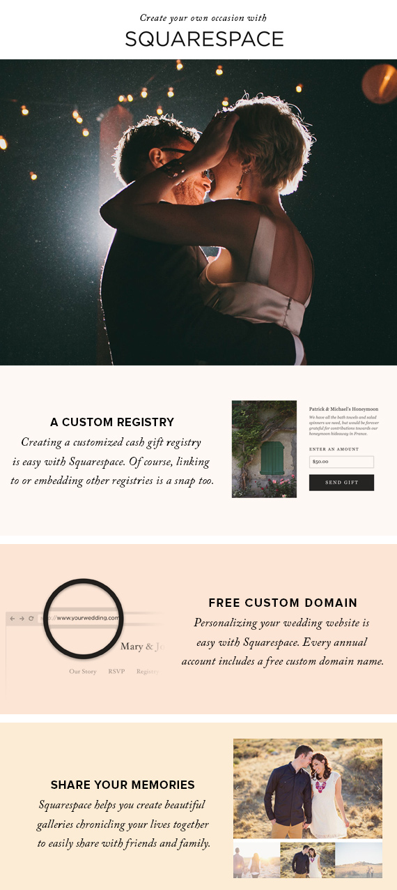 Ready to get started on your customized wedding website? It’s pretty addicting, just to warn you. Head to Squarespace now to get started!