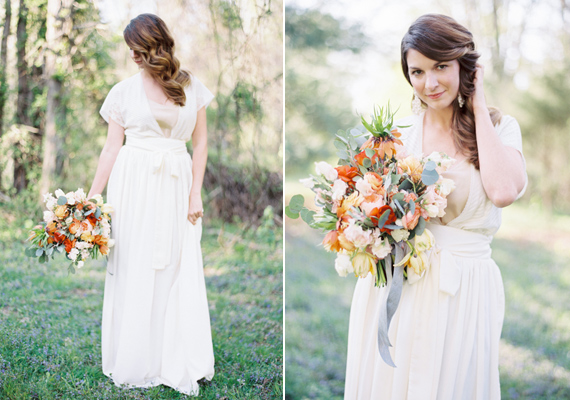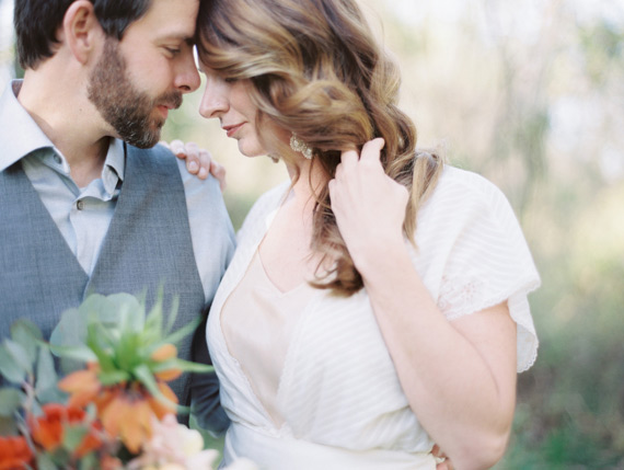 We’re smitten with this bridal look. Such a great way to wear two pieces and have it look like one, no? The top is vintage from Stop The Clock on Etsy, and the skirt was custom made by Bekah Stewart of A Well Traveled Woman.