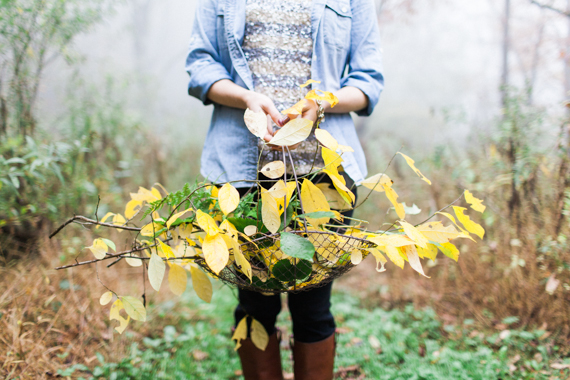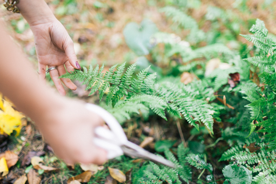 You’re in for a real treat today, ladies and gents. Kelly Perry of Philosophy Flowers decided to team up with Sara Logan Photography to give us a behind-the-scenes peek at what goes into one of her wild + beautiful arrangements. It’s pretty amazing to see how she actually forages some of her foliage in the North Carolina woods! We’ll let Kelly take it from here…