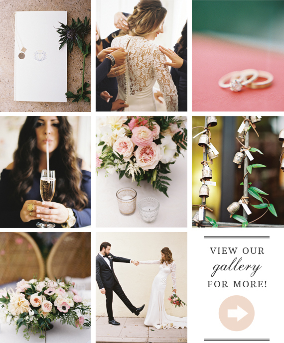 When you’re defining your wedding day style, you can really get as specific as you want. On a weekly basis, we hear all kinds of lovely descriptions from ‘rustic elegance’ to ‘understated glamour.’ But it’s not everyday you hear “Hemingway’s beach house in Cuba, but transplanted to La Jolla, with a bit of Moroccan flair as an added bonus”—which is how Michelle and Gareth describe their wedding aesthetic. Well, whatever you want to call it, we like what we see. Thanks Jill Thomas for capturing it all on camera!