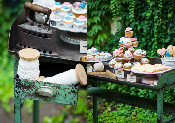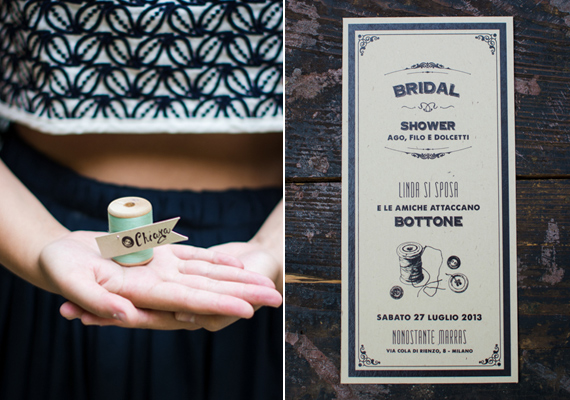 Cute alert. This sartorial themed shower from Elisabetta Marzetti + Cristina Di Giovanna is one of the most adorable things we’ve seen in awhile. The concept for the shoot all revolved around a fun activity idea: a sewing class to create a ring cushion for the bride to use on her wedding day. And with that in mind, cupcakes were topped with buttons, spools of thread repurposed as place cards, and vintage measuring tape incorporated into the décor.