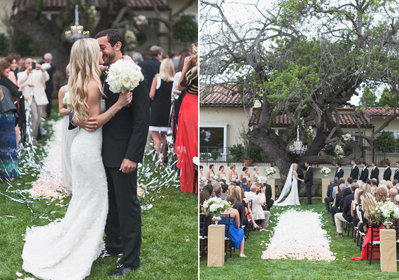 What do ya say we send you off into the weekend with something sweet and romantic? Kaitlyn + David’s wedding has it all as far as garden weddings go: a lush outdoor setting, ivory rose petals cascading down the aisle, a candlelit dinner, and a white-draped ballroom filled with lots of dancing to carry on the rest of the party! We love how B. Miller Photography captured all the delightful little details.