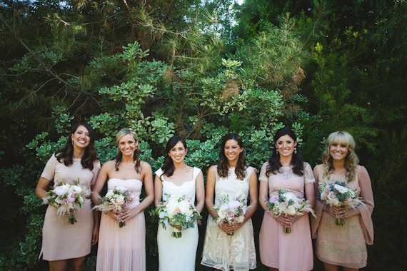 You can never go wrong with a blush/nude/cream mix of bridesmaid dresses. Always looks gorgeous.