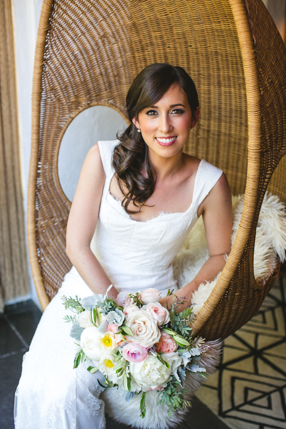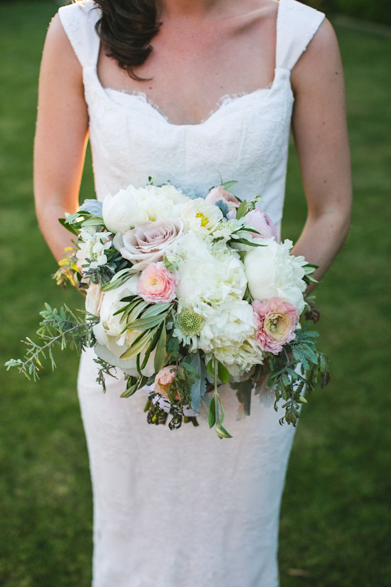 Ali worked with Honey & Poppies to create a bouquet that was lush and romantic, with lots of soft, feminine blooms—plus a few pops of greenery to add texture and movement.