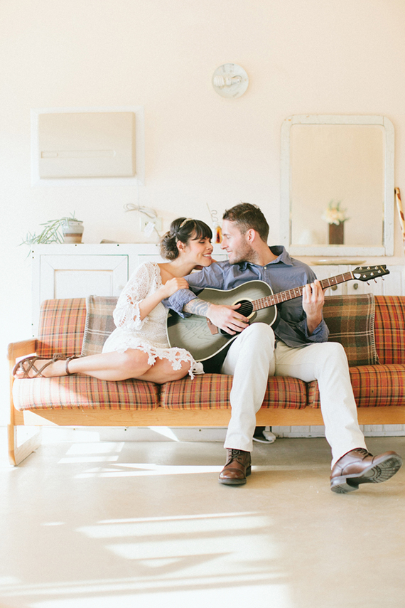 Prepare yourself for one rad engagement shoot, cakies. Photog Wai Reyes followed these two lovebirds out to Joshua Tree, to a quaint little cabin rental in the middle of the desert. They danced around with DIY dream catchers, nestled together inside a makeshift teepee, and posed against the weathered paint on the porch. After the shoot, Vanessa and David played cards in the middle of the cabin living room while listening to Johnny Cash and the wind blowing outside. Dreamy indeed.