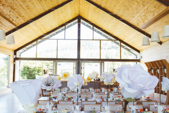 Paper flowers, galore! Cornelia says, Paul and I (along with our close friends, Carin and JP) made all the paper flowers, pinwheels, origami foxes, confetti, seating chart, paper menu’s etc. Our flat was in total chaos for 6 months prior to the wedding, as we hosted a number of craft days with our friends. The parties were filled with laughter, glue gun fumes, and sparkling wine, because the intention was always to have fun!