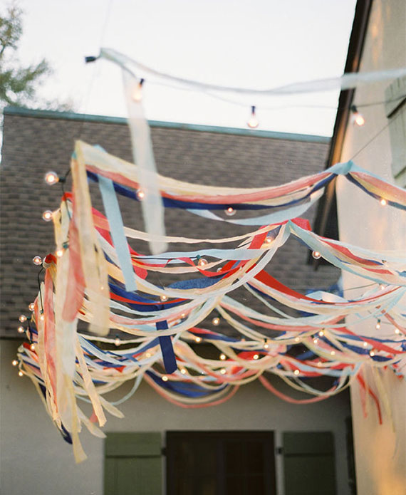 Then, turn your backyard or little corner of the beach into a mingling spot for friends + fam with the help of streamer decor made from crepe paper + string lights.