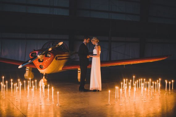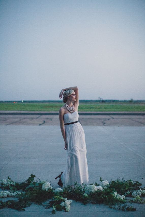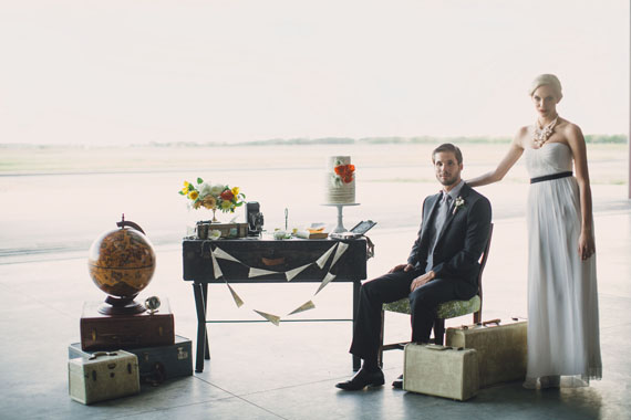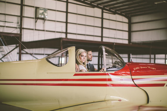 We love when a venue totally inspires a unique theme. With the locale being a Texas airplane hanger, photographer Whitney Bennett + the team below portrayed timeless beauty and an adventurous spirit. Whitney says, We wanted to build the idea of our couple living as constant travelers. Endearing, adventurous, and passionate enough to have their wedding in a hangar because of it’s symbol of a new journey.