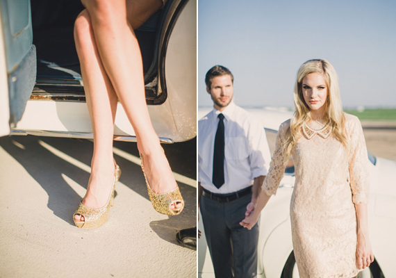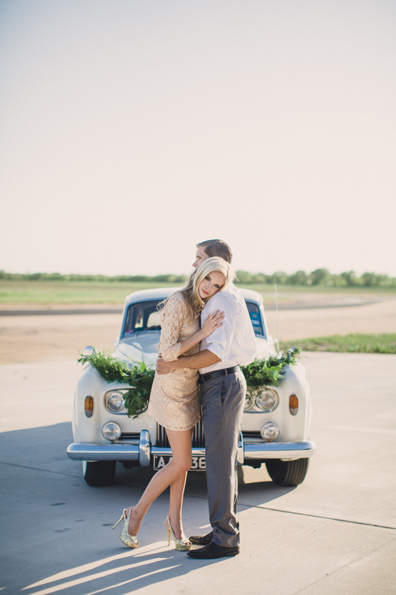 Photography: Whitney Bennett Photography / Location: North Texas Regional Airport / Planning: Southern Social / Styling: Amanda Marie / Set Styling: The Quiet Rabbit / Flowers: The Southern Table / Makeup: Natalia Issa / Calligraphy: Pretty in Ink Calligraphy / Cake: Layered Bake Shop / Furniture: Gold Dust Vintage / Car: Blue Diamond Limos / Models: Brianna Auten, Jeff Pollock