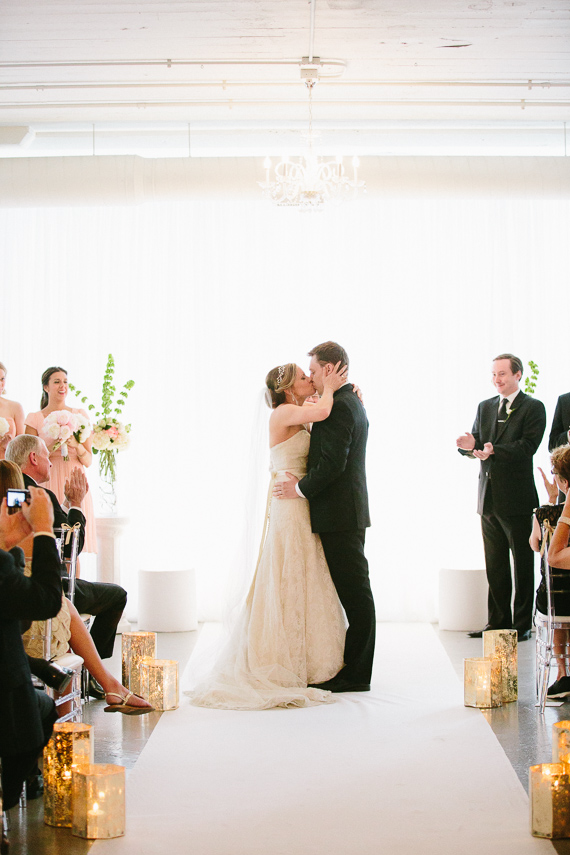 Photographer: Katie Kett Photography / Ceremony & Reception Venue: Room 1520 / Wedding Coordination: Ashley La Fleur at La Belle Fleur Events / Flowers: Steve’s Flower Market / Catering: D’Absolute Catering / Cake: Scafuri Bakery / DJ: Chris Nergaard of Style Matters / Ceremony Draping: Art of Imagination / Pillows, Table Numbers, & Sequin Tablecloths: Etsy / Bride’s Dress: Wedding 826 / Bridesmaid Dresses: J. Crew