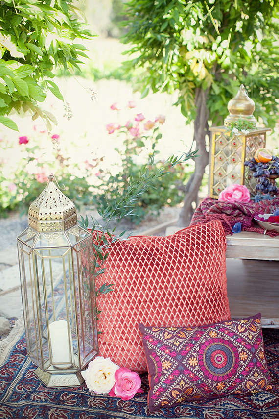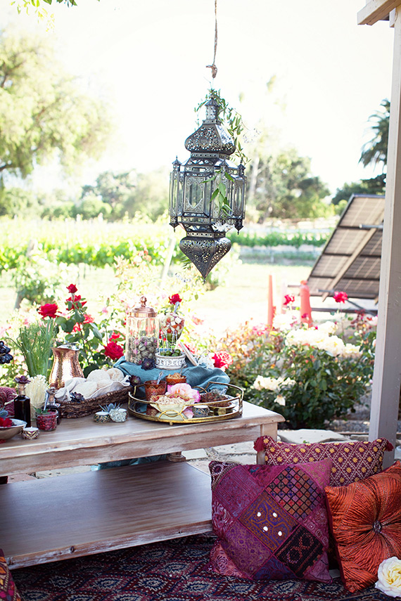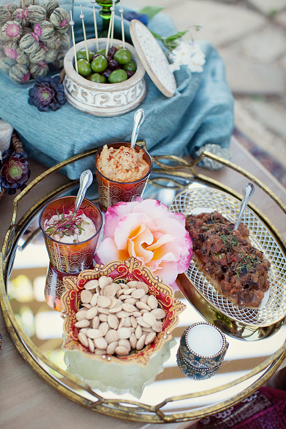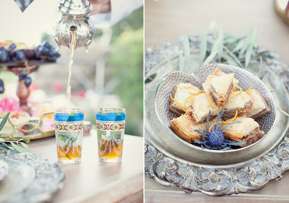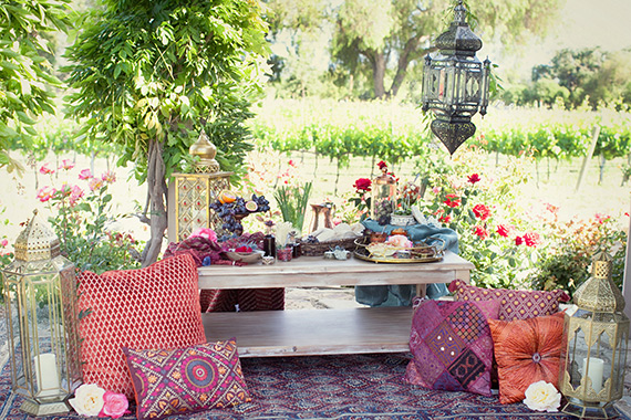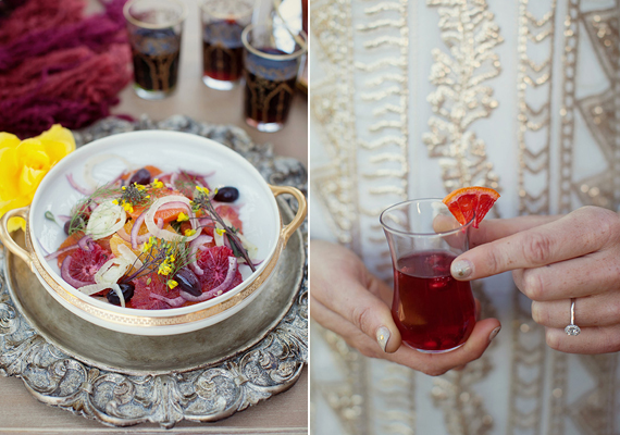 Can you name one person that doesn’t love a Moroccan theme? Bold colors, complex patterns, intriguing design elements, elegant touches of gold… Srsly, what’s not to love?! With planning, design + florals by Hint of Chic and some impressive eats by Haute Catering, we’re not sure whether we want to switch out our own home décor or grab a bite to eat first…