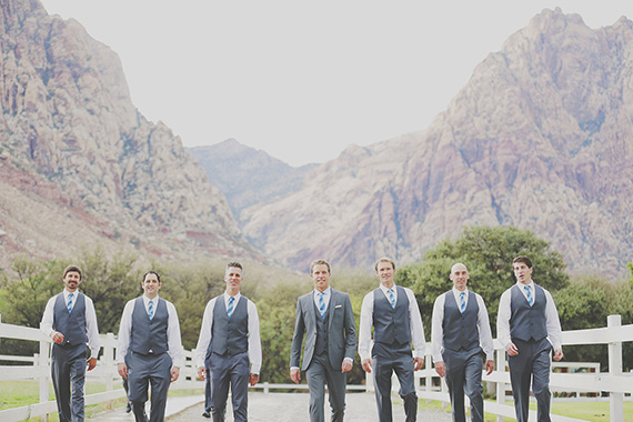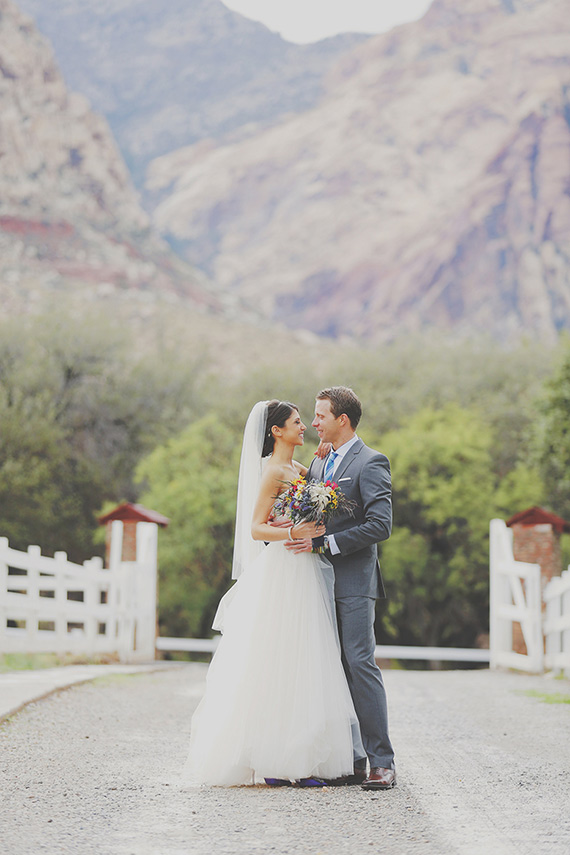 Despite last minute changes in venues and weather, planner + bridesmaid Courtney of When Pigs Fly Events says the whole thing was incredible: The clouds cleared up 30 minutes into the first look and we lucked out to have spectacular photos and a gorgeous ceremony. It took the heat right out of the Vegas September air. It couldn’t have been more beautiful.