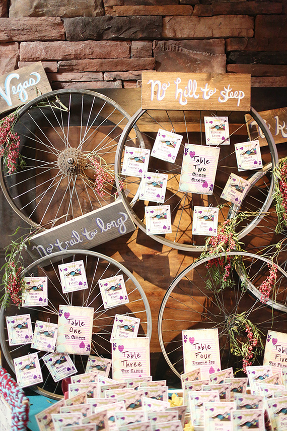 Personal touches for Chris, a scientist + cyclist: bicycle themed artwork + science elements like margarita salt test tubes.