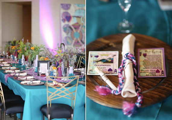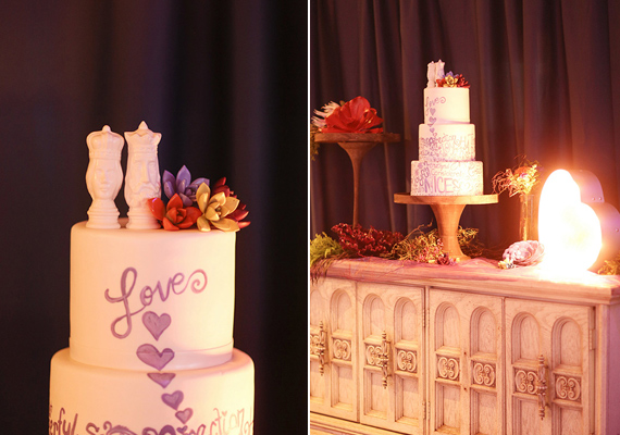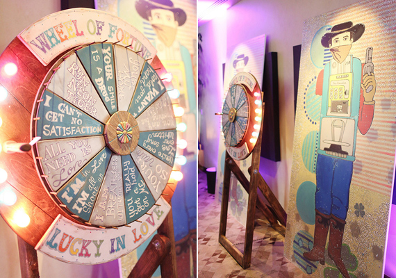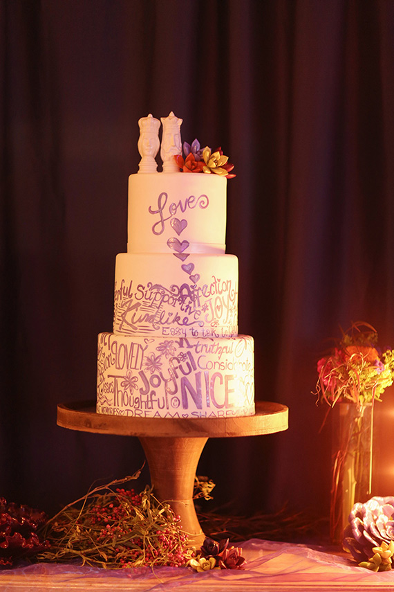 Photography: Gideon Photography / Videography: NP Films / First Look Pictures: Spring Mountain Ranch / Venue & Catering: Red Rock Country Club / Wedding Design, Planning, Coordination: When Pigs Fly Events / Floral Design: Layers of Lovely / Invitations: Staacy Cannon / Hair: Jaclyn Braverman / Makeup: Rachel Harper & Shauna Morgan / Lighting, Rentals, Decor, Custom Linens: Pigs are Flying Prop Shoppe / Royal Romantics Artwork: Kelcey Fisher / Hanging Lyric Art & Golf Cart Art: Jeannette Hall / Other Artwork: Samantha Stone, Tatiana Hantig & Veronica Werth / DJ: Music Solution / Transportation: Lucky Limo / Elvis: 24-7 Productions / Cake: Las Vegas Custom Cakes / Bride’s Dress: Reem Acra from Kleinfeld’s NYC / Shoes: Manolo Blahnik / Veil: Kleinfeld’s NYC / Bride’s Engagement & Wedding Rings: Tacori / Groom’s Suit: Hugo Boss / Bridesmaids’ Dresses: Ivy and Aster