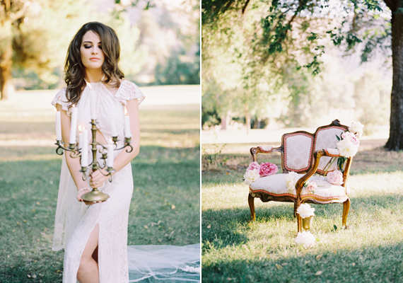 Lotta of Mint Design says, Gold candelabras, handmade antique furniture and dreamy sunlight made for a mystical ambiance.