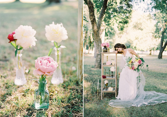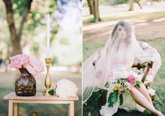 We’re just on a roll with gorgy sunlit photos today aren’t we? First, this morning’s sunset anniversary shoot, and we’re onto another romantic, earthy setting, drenched with tons of lovely natural light. Inspired by soft earth tones and peonies (need we say more?), Mint Design whipped up a most romantic bridal shoot. Now, how about a few sunlit photos by Mariel Hannah to set the scene?