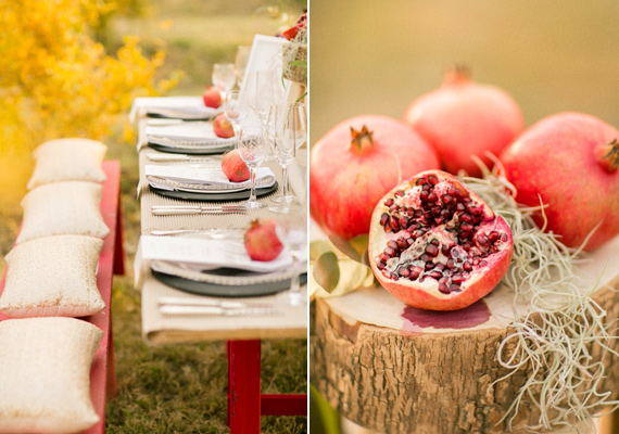 We’ve got a good one today, guys. Not only was this styled shoot set in beautiful South Africa, but it took place at Ganico, an organic, family-owned pomegranate farm in rural Muldersdrift. Naturally, Tamlyn of Tyme Photography and the team at Afresh Events wanted to capture the diversity of their scenic location right as the seasons changed. It sure is a beauty!