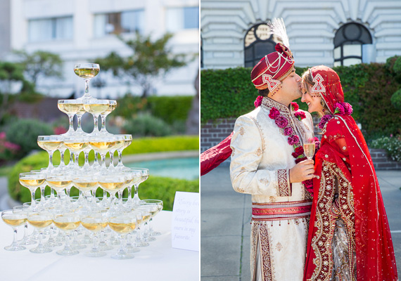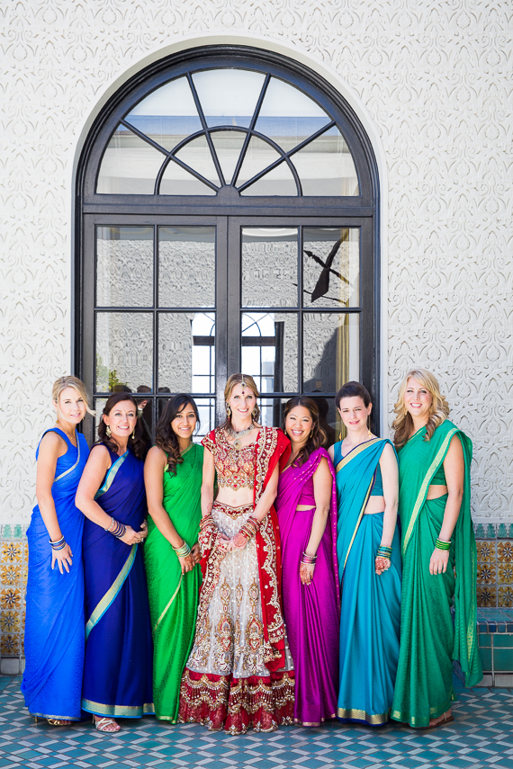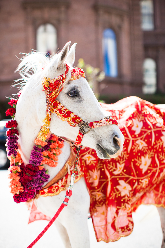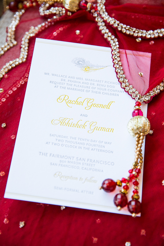 Photographer: Kate Webber / Ceremony & Reception Venue & Catering: Fairmont Pavilion & Fairmont Crown Room / Event Coordinator: Alison Events / Florist: Natalie Bowen / Hair: The Red Chair Salon / Makeup: Lili from Artists by Sherrie Long / Invitations: Alexandra Rinde of The Aerialist Press / Cake: Inticing Creations / Rentals: Hartmann Studios, Frances Lane Vintage, Classic Party Rentals, One True Love / DJ: DJ Cams / Photobooth: The Magnolia Photo Booth Co. / Horse: Hackney Horse / Bride’s Dresses: Oscar de la Renta from Marina Morrison in SF & Sahil Boutique in Chicago / Jewelry: Kate Spade / Wedding Rings: Smythe Jewelers in Baltimore, MD / Lipstick: Bobbi Brown / Groom’s Suit: Brooks Brothers / Shoes: Bruno Magli / Bridesmaids’ Sarees and Bangles: from India / Bridesmaids’ Ceremony Dresses: Joanna August / Groomsmen Suits: Jos A. Banks
