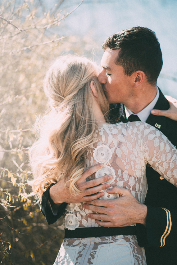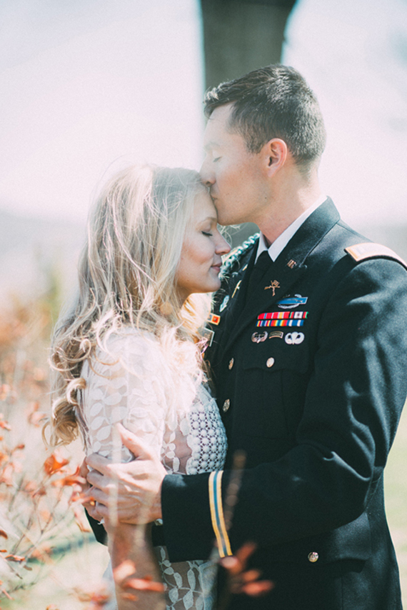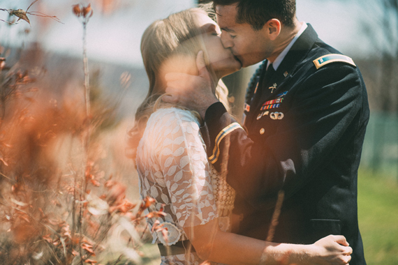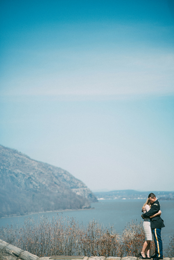Alright, it’s story time, guys: Erica + Braden met in 2010 and would take turns traveling to visit each other while Braden attended the West Point Military Academy and Erica began her fashion career in NYC. The academy was a meaningful place for them, and the perfect spot to get formal shots of B in uniform. So they grabbed photog Julie Pepin and revisited his alma mater. Julie says it looked cinematic: Maybe it was her dress and his uniform and the crazy love that they have between them that made me feel like I was photographing two characters out of some timeless love story from 50 years ago. Or maybe it was the surreal natural beauty and landscape that is West Point with its historic buildings and amazing views of the Hudson.