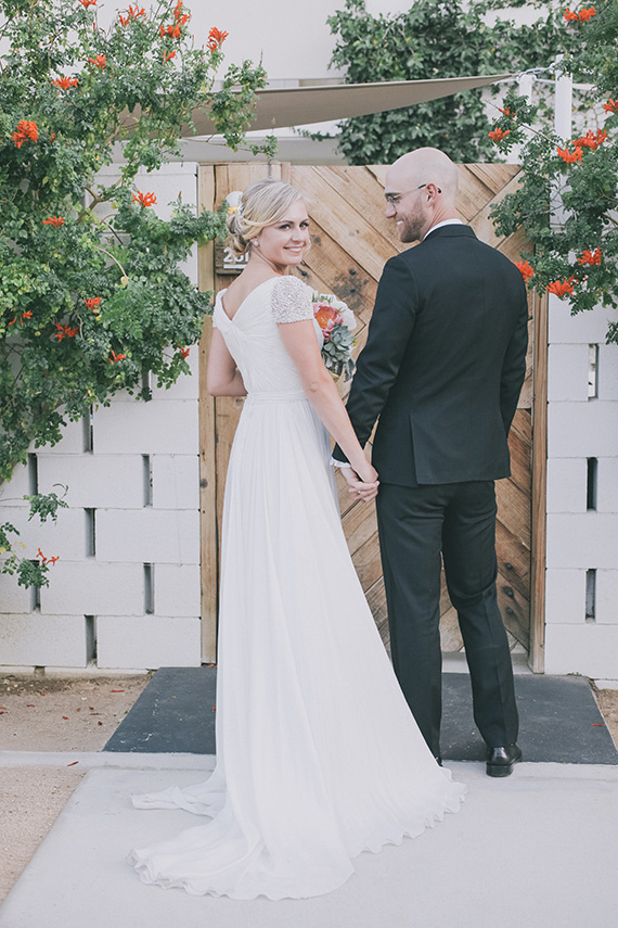 If you were as enamored with this morning’s Horizon Hotel rehearsal dinner in Palm Springs as we (still) are, then you’ll be reeeally excited about their big day. As you can imagine, Christine & Jordan’s Ace Hotel wedding was even more gorgeous, filled with the most romantic yet understated colors, chic details, and lots of amaze décor crafted by the bride herself.