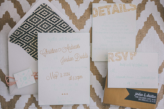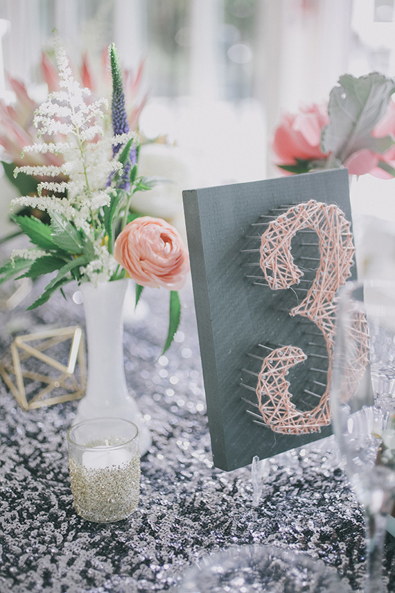 The bride is a huge DIYer, already armed with all the crafting tools she needed, so she got right to work on an impressive list of projects: table signage, votives, garlands, table runners + this assignment board (which now lives in their home!), ceremony curtain, invites and other paper products, gift bags, candles, and cufflinks.